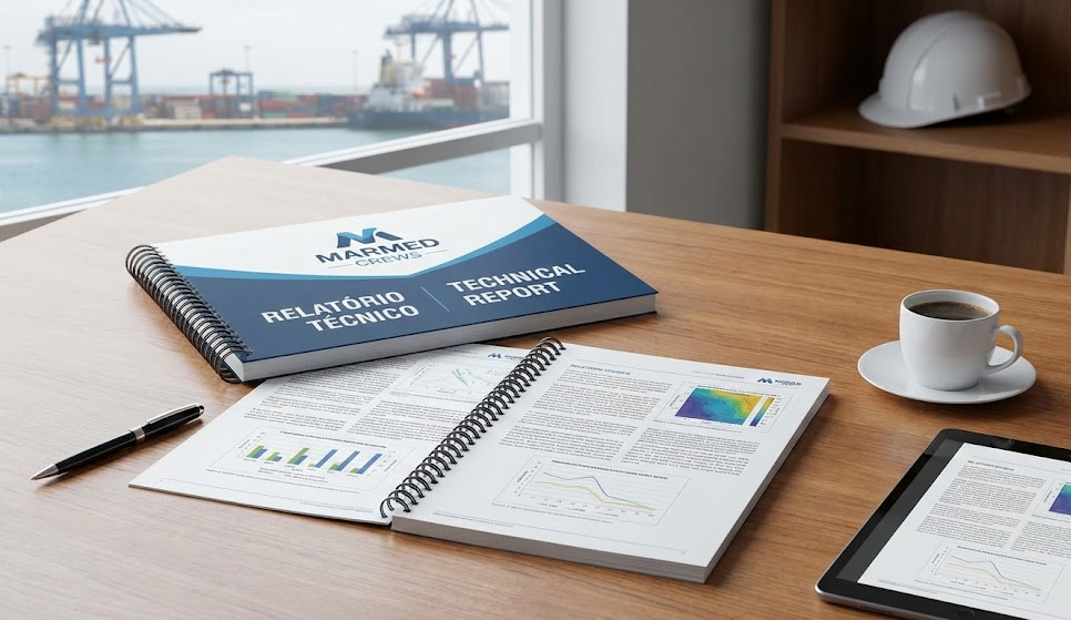 Relatórios técnicos bilíngues fortalecem a governança da operação marítima, garantindo:
